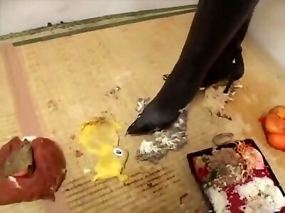 Highheel and tights wearing mega-slut taunting and get jizz flow on her shoes