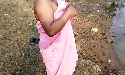 Hot Desi Sexy Lady Having Fun Here With Village Boyfriend Taking Bath On Sea