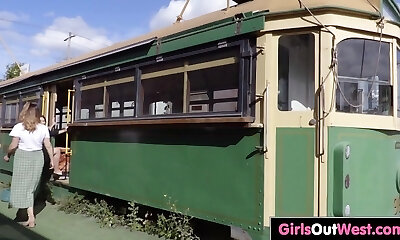 2 lesbian BBWs make out in vintage tram carriage
