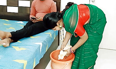 Indian maid, Bhabhi is permanently having fuck-a-thon with her employers son instead of doing her job