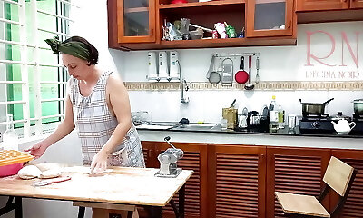 Ravioli Time! Naked Cooking. Regina Noir, a nudist cook at nudist hotel resort. Nude maid. Naked housewife. Scene 1