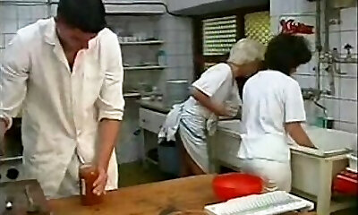 German old Granny Erika 73 seduce to Screw in kitchen by Young Stud