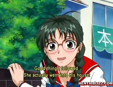 Lovely anime coed gropes her stiff nips and gets screwed