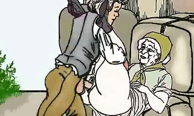 Guy fucks granny on the bales! Pornography cartoon