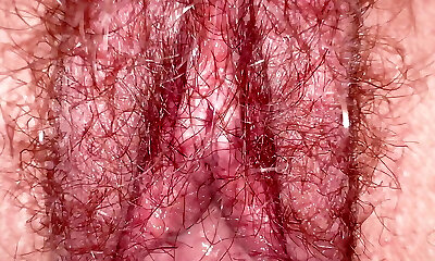 Hairy Bush macro closeup with creampie dripping, Amateur Milf Wifey on homemade sextape with the most beautiful unshaved bush