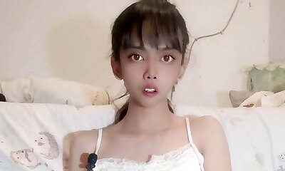 Very skinny shemale proudly exposes her bulging mushroom