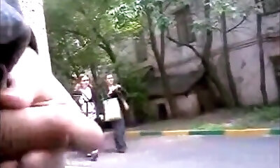 Man flashes in public and jerks off chisel near unknown damsel. OMG!