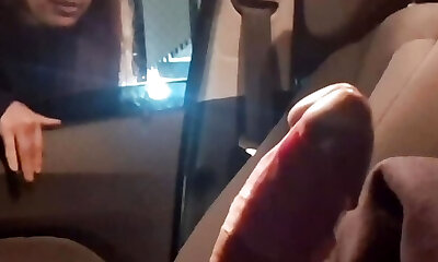 A stranger chick jerked off and sucked my salami in a train on public