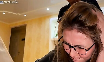 My stepbrother gently gobbles my hairy pussy and fucks me in doggie. Natural sex