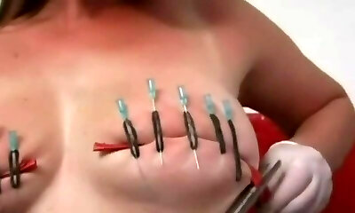 Electro Dick Pierced Eggs. Cock and Nuts Electric torture