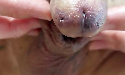 This is Close Up Extreme. Main frontal glance. Latex gloves, detailled peehole and cumshot.