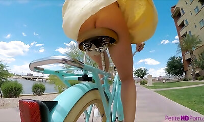 Pantless whore in super short skirt Susy Gala is riding a motorbike before crazy sex